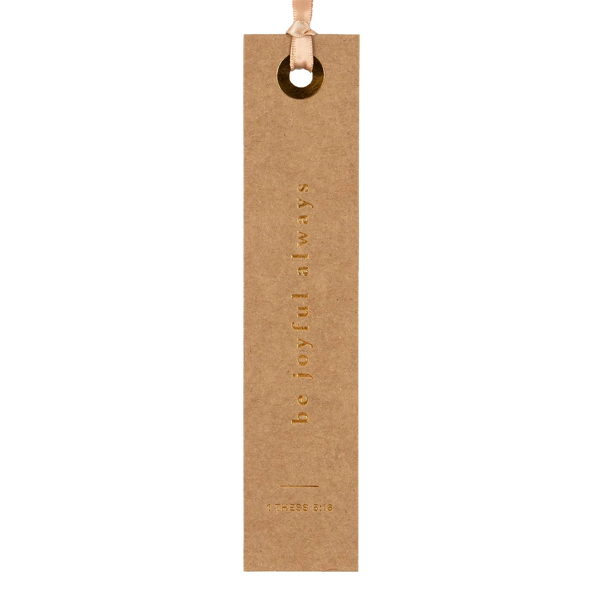 Uplift moods with our Be Joyful Always Bookmark! This elegant bookmark is perfect for spreading happiness and joy to everyone you encounter. With its stunning letterpress design and gold foil accents, it’s an ideal way to mark your favorite verses in the Bible. Gift this lovely bookmark to friends and family, or share it with members of your Bible study group to i pire and uplift their spirits.