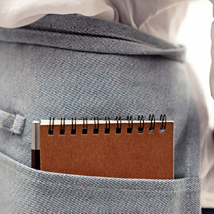 Kitchen half apron with a clean and functional design with three large pockets for women and men, one small pocket, and a utility loop to hang items. Great for servers, stylist, chefs, barbers, gardeners, baristas, cooks, and makers of all kinds. 100% cotton (80% upcycled).