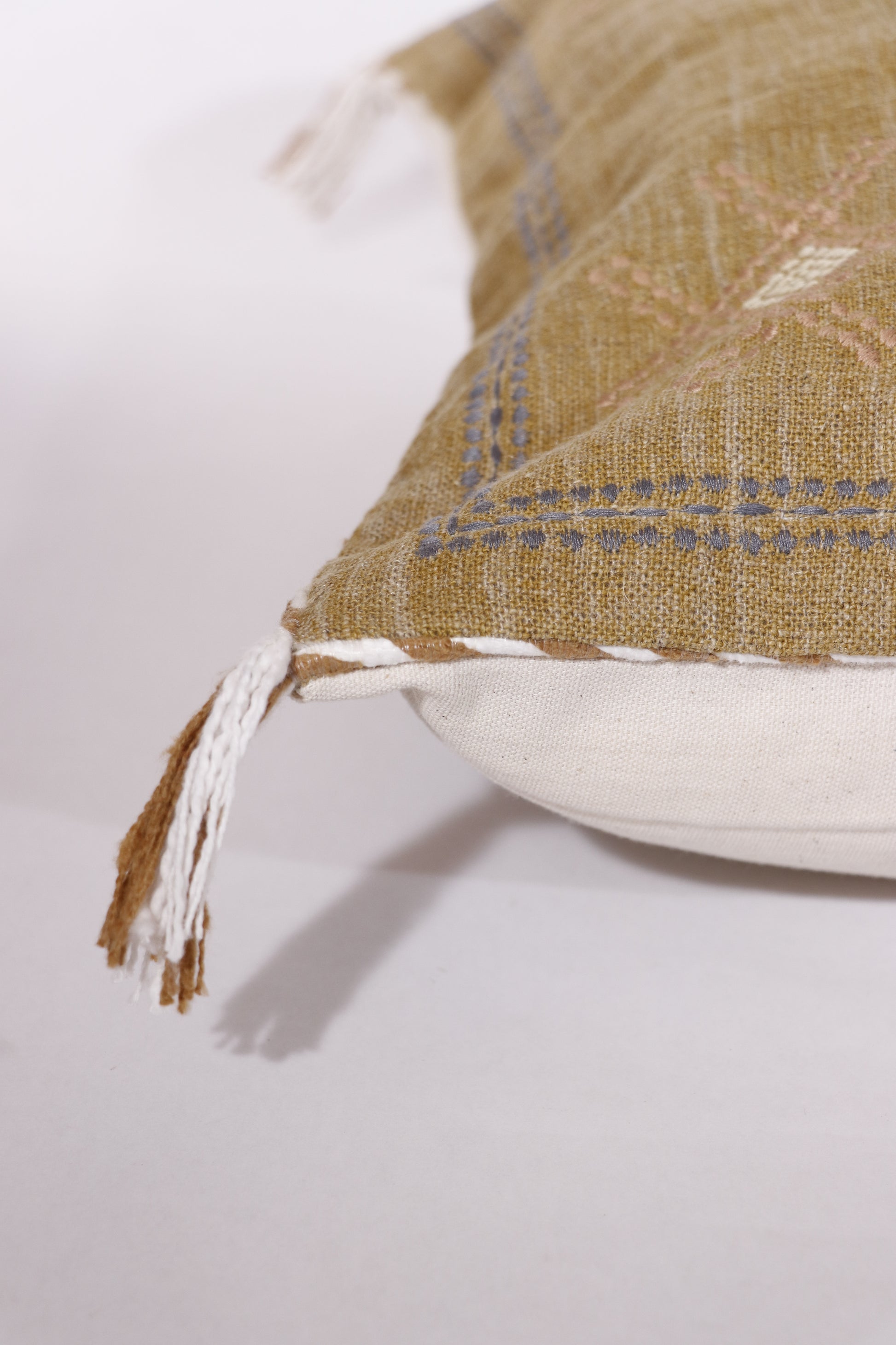 Cactus silk inspired pillow cover pillow featuring delicate hand-embriodery. Crafted from pure cotton, the pillow cover is hypoallergenic and skin-friendly. Style it on your couch, favorite chair, bed, or in your entry to accent the space with depth and dimension. Handmade by local artisans in Mathura, a spiritual hub in India.