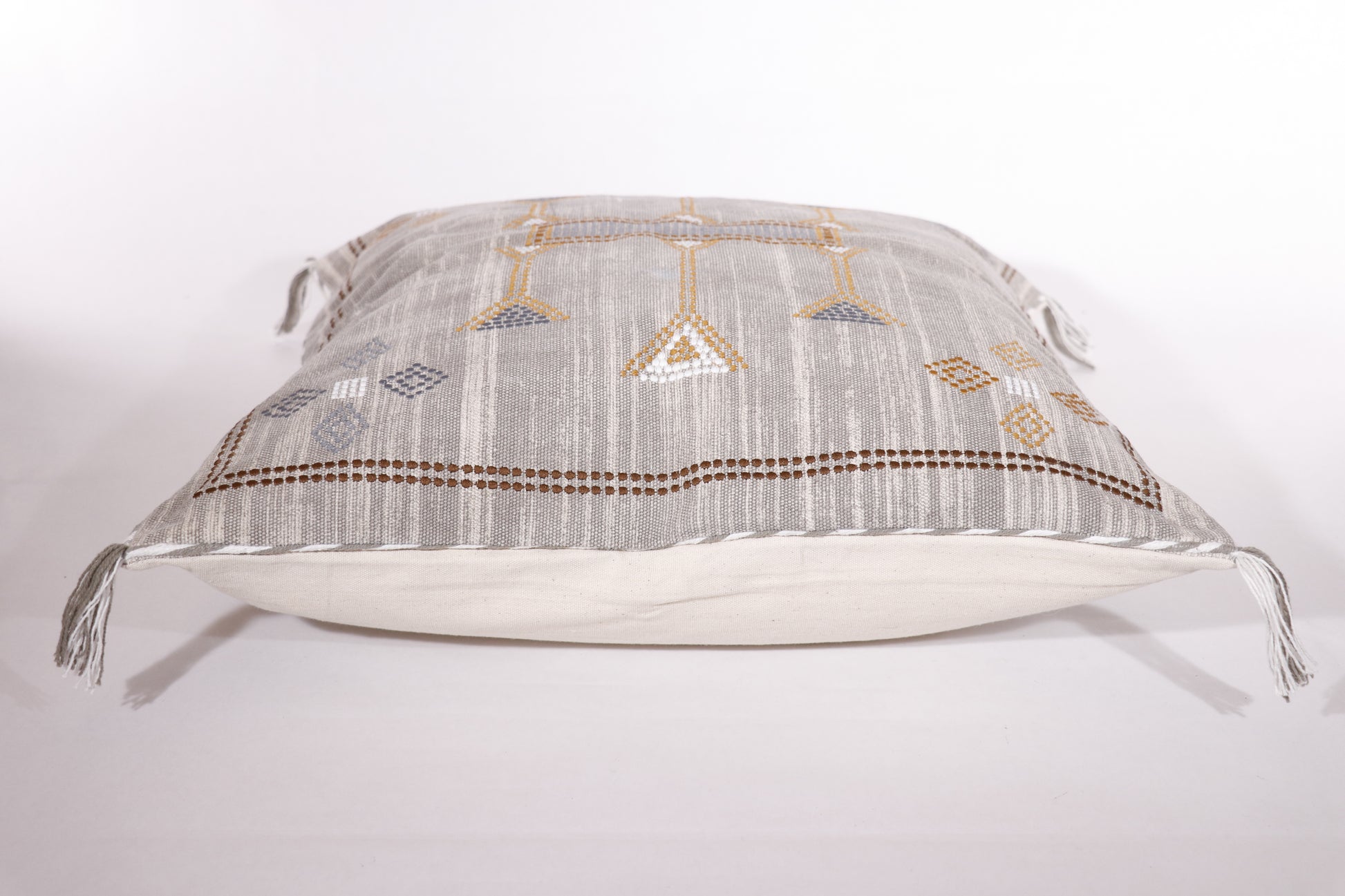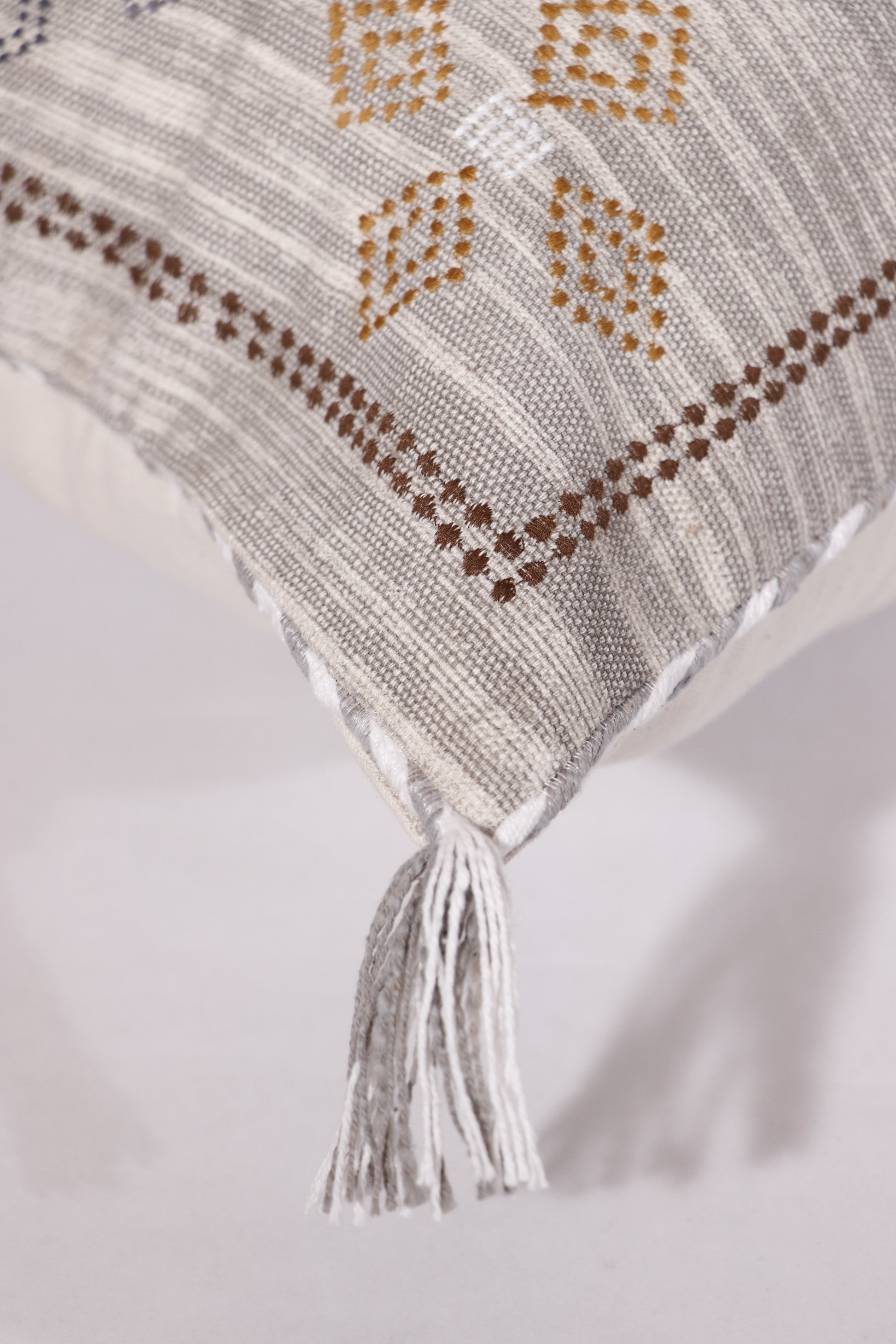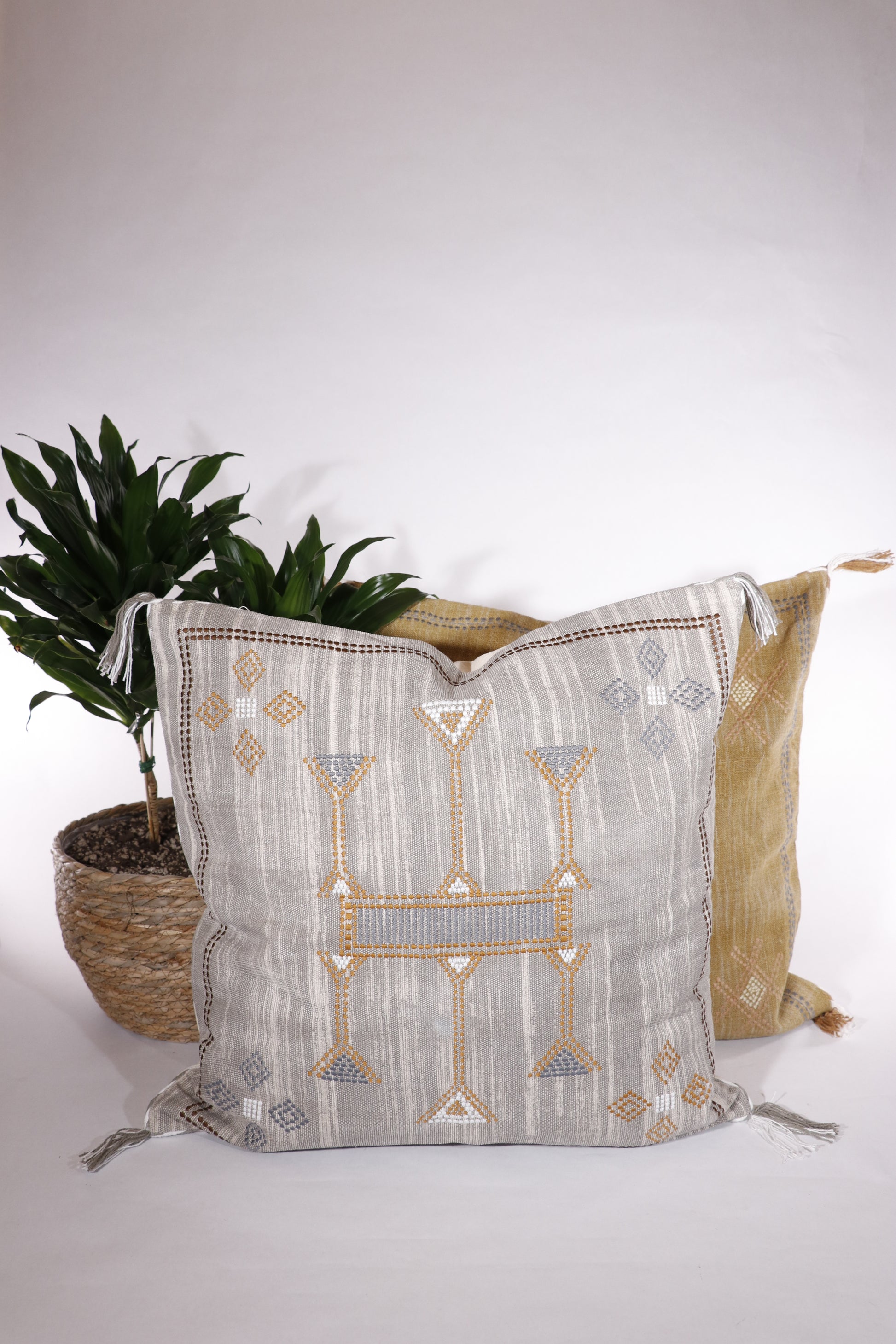 Cactus silk inspired pillow cover pillow featuring delicate hand-embriodery. Crafted from pure cotton, the pillow cover is hypoallergenic and skin-friendly. Style it on your couch, favorite chair, bed, or in your entry to accent the space with depth and dimension. Handmade by local artisans in Mathura, a spiritual hub in India.