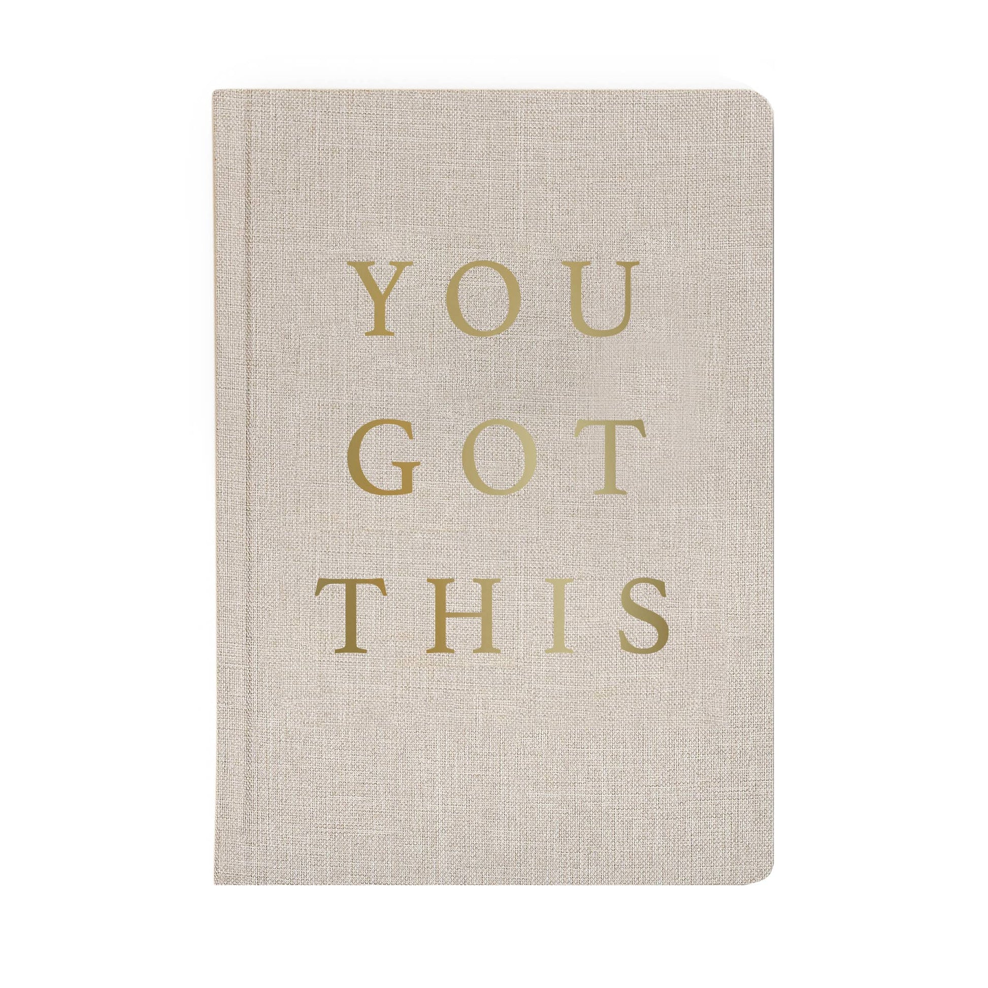 • Design: You Got This • Tan Fabric Journal with Gold Foil Details • 100gsm Uncoated Lined Paper • Ribbon Bookmark in Gold • 100 Pages Front and Back (200 Total)